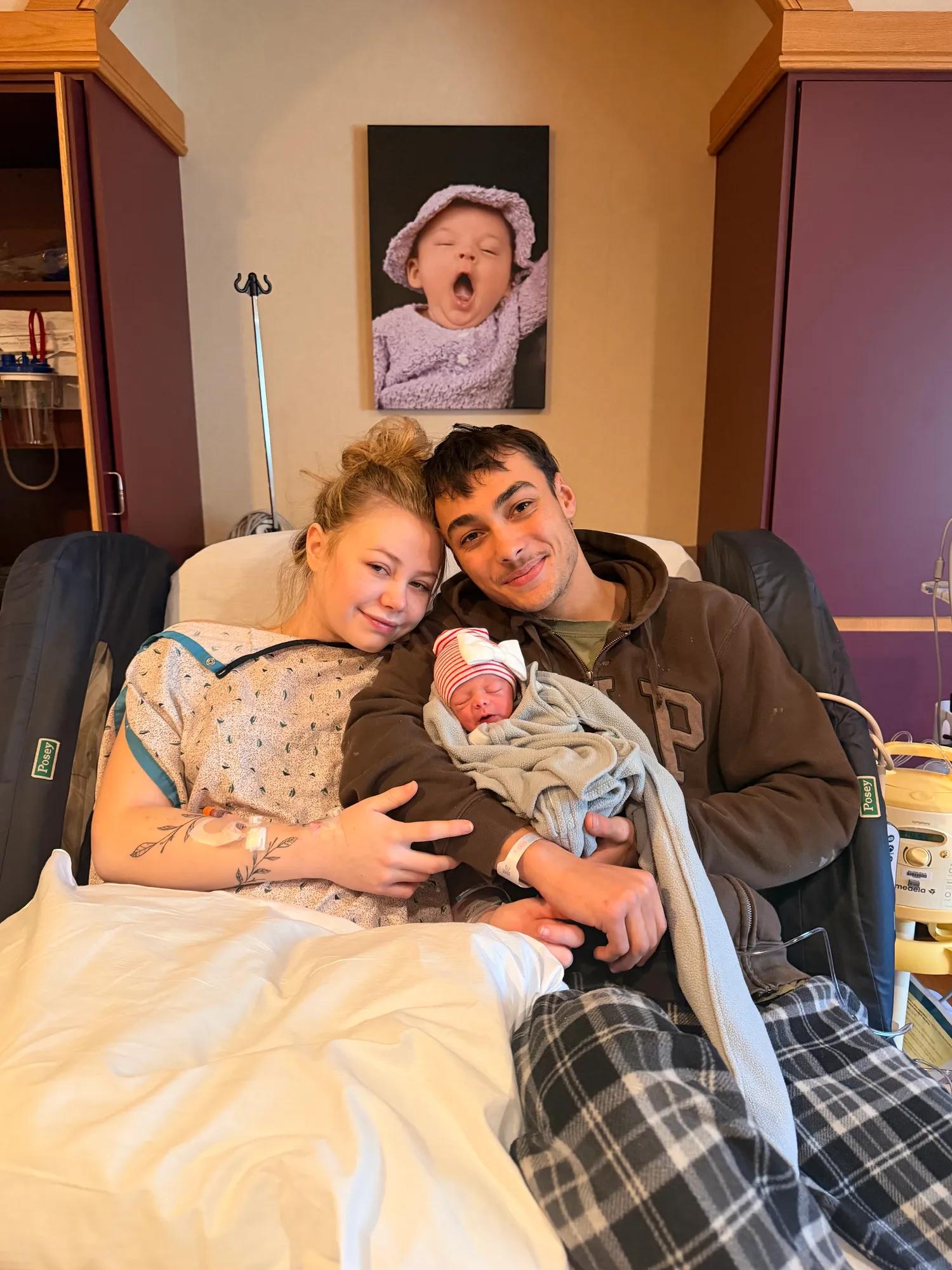 Mom Emma and dad Jackson hold baby Tateum at WellSpan Good Samaritan Hospital.